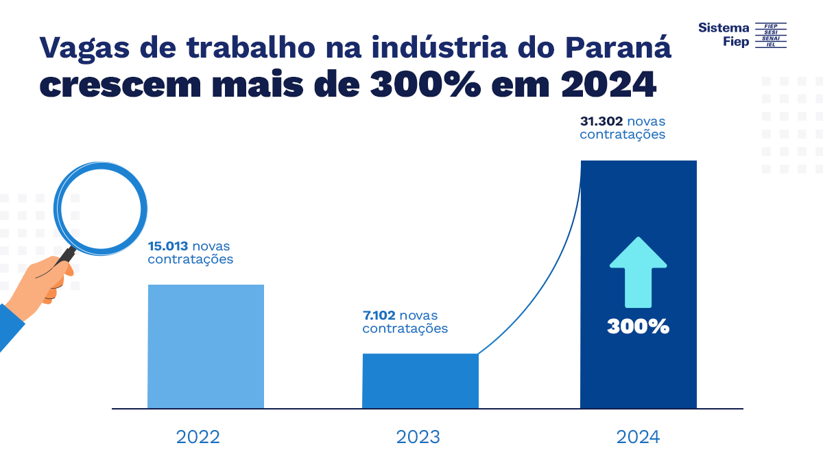 Com 789,6 mil trabalhadores empregados no setor, a indústria paranaense registrou um crescimento expressivo de 341% no número de contratações em relação a 2023, evidenciando um mercado de trabalho mais dinâmico e com salários mais atrativos. No Brasil, o setor industrial acumulou 306.889 novas vagas no ano, com um crescimento de 146% na comparação anual.