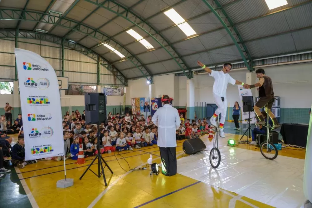 A Itaipu Binacional e o Itaipu Parquetec realizaram na manhã da última quinta-feira (10) um evento que marcou o início das atividades da agenda ambiental em 2025, voltadas à conscientização de estudantes nas escolas municipais de Foz do Iguaçu. Através de espetáculos que abordam datas comemorativas de cunho ambiental, a ação busca sensibilizar os alunos a adotar práticas sustentáveis no dia a dia. O evento de abertura ocorreu na escola municipal Professora Elenice Milhorança, no Jardim América.