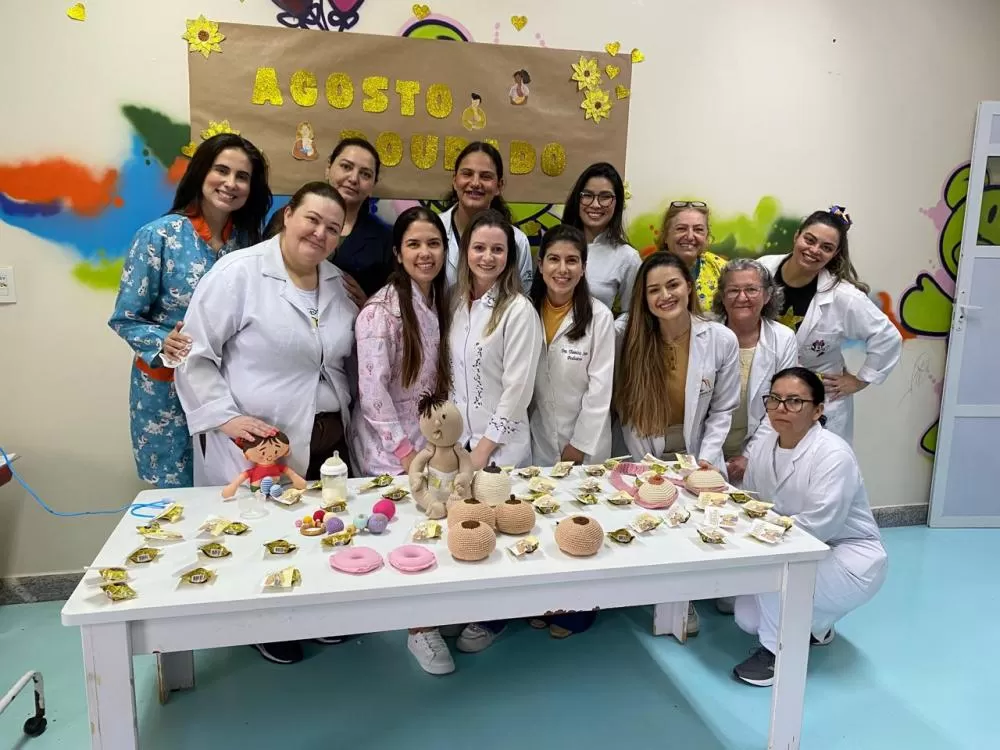 Na manhã desta segunda-feira (18), o Hospital Municipal realizou uma Ação de Conscientização em celebração ao Agosto Dourado, mês dedicado ao incentivo da amamentação. Aproximadamente 20 mães participaram do evento, com a participação da equipe de pediatria, que se dedicou a criar um ambiente acolhedor na brinquedoteca, decorada especialmente para a ocasião.