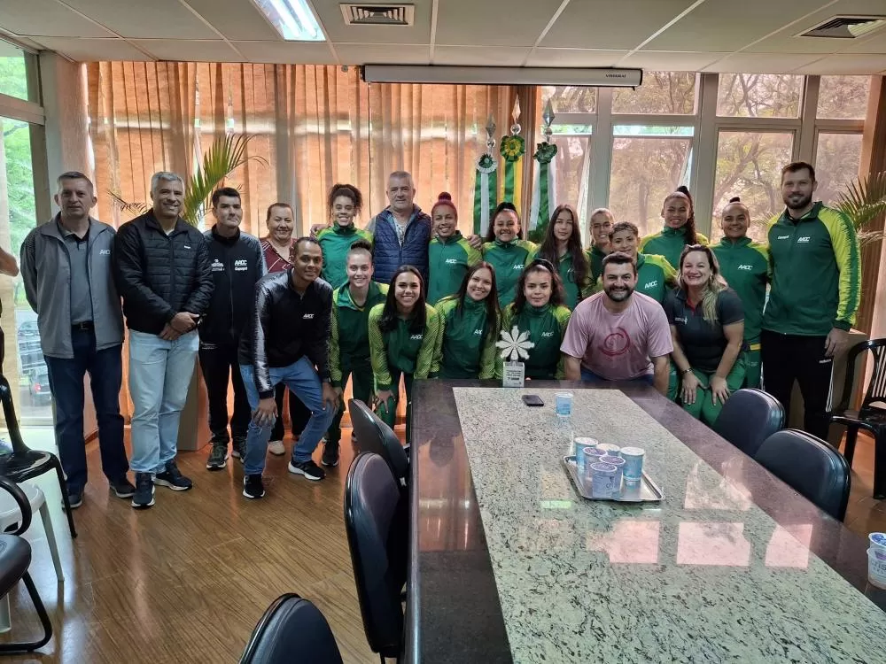 Durante a recepção, o prefeito Adriano Backes destacou o esporte como um poderoso aliado na formação dos jovens, promovendo saúde, disciplina, trabalho em equipe e valores que transformam vidas dentro e fora das quadras.
