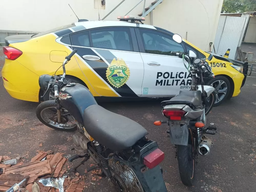 Duas motocicletas foram apreendidas e encaminhadas a Delegacia de Polícia Civil de Santa Helena por estarem com adulterações em sinais identificadores e sem placas.
