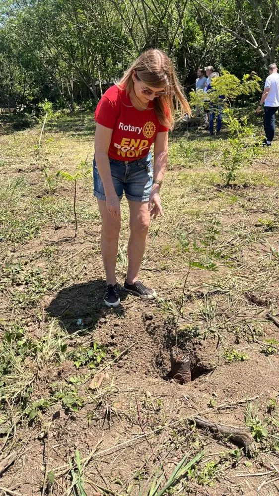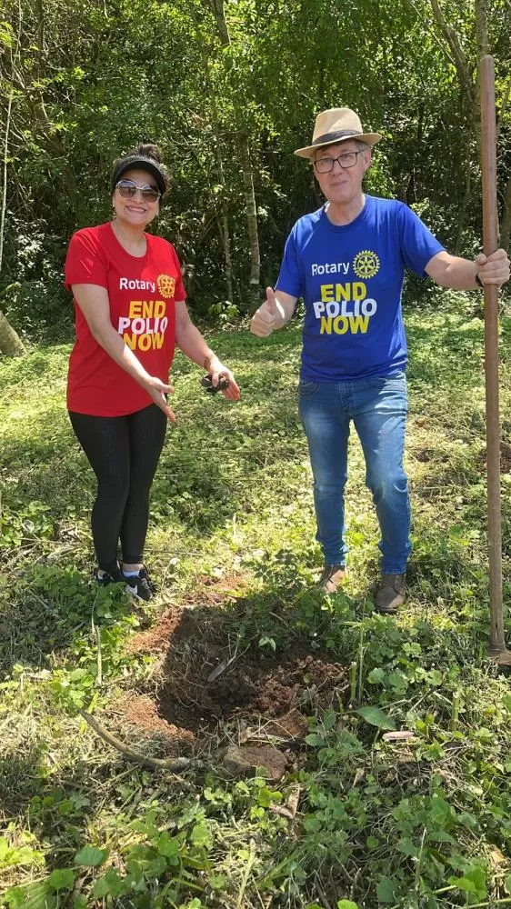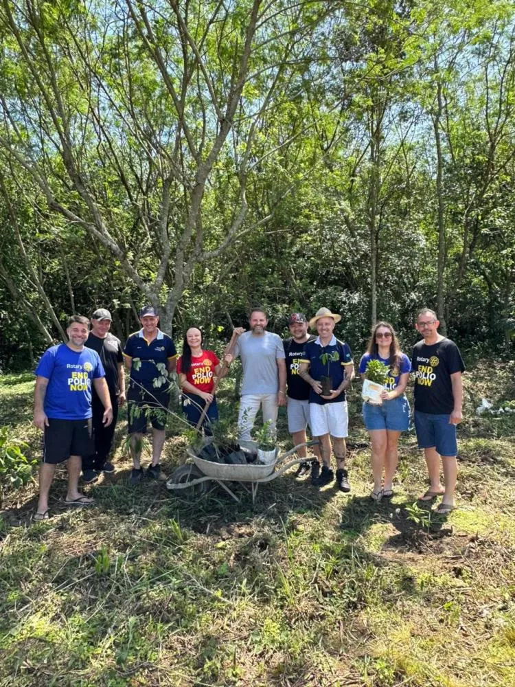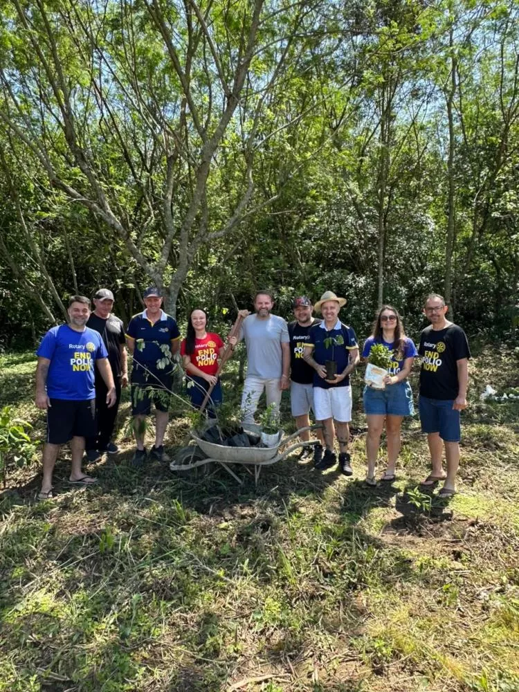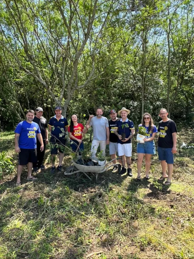 Os rotarianos que participaram da atividade vestiram a camiseta da Pólio, unindo a causa ambiental a outra importante campanha global do Rotary International.