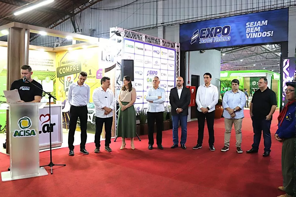 A Expo Santa Helena 2025 teve sua cerimônia de abertura realizada na noite desta quinta-feira (16). O evento marca o início oficial de quatro dias de atividades voltadas a negócios, cultura e entretenimento. Organizada pela Associação Comercial e Empresarial de Santa Helena (Acisa), com apoio da Administração Municipal, a feira segue até domingo (19), com previsão de movimentar a economia e atrair milhares de visitantes de toda a região.