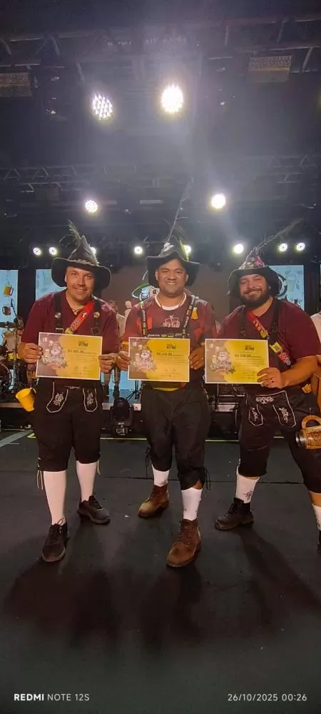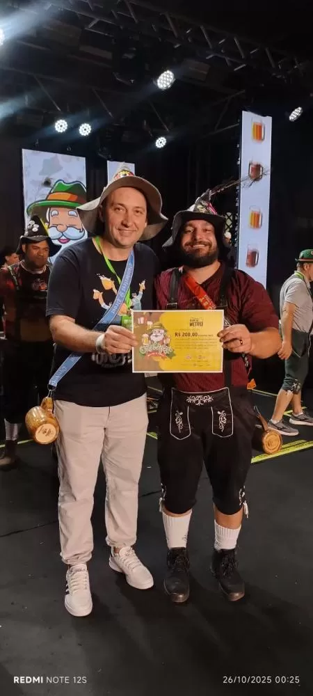 A final masculina do concurso Chope em Metro animou ainda mais a Oktoberfest 2025 de Marechal Cândido Rondon. Em uma disputa acirrada e cheia de emoção, Valdir Dias garantiu o lugar mais alto do pódio ao completar o metro de chope em 16,24 segundos, conquistando o título de campeão.