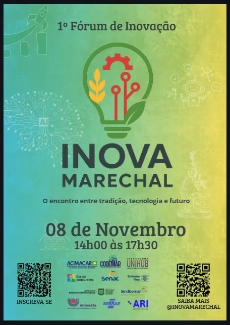 Esta iniciativa é do Conselho de Inovação de Marechal Cândido Rondon e tem como objetivo disseminar a cultura de inovação e empreendedorismo na população. A proposta é transformar a ciência, tecnologia e inovação como vetores de desenvolvimento do município, ampliando oportunidades, atraindo e retendo os jovens talentos formados em nosso município.