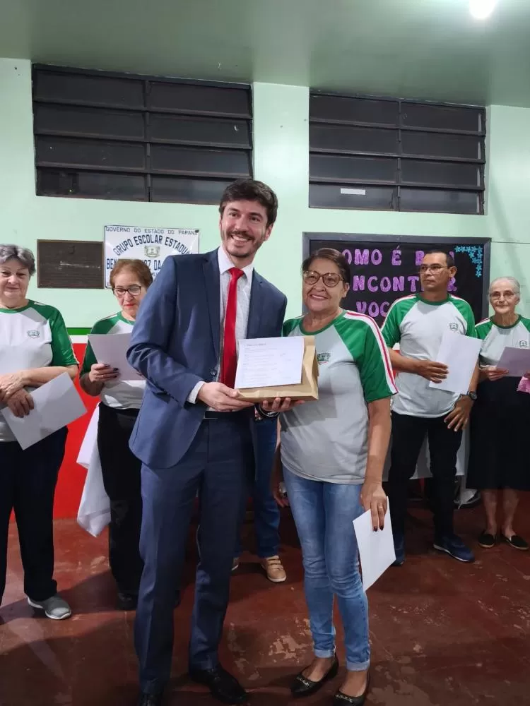 Na noite de segunda-feira (27), a Escola Municipal Bento Munhoz da Rocha Neto, polo da Educação de Jovens e Adultos (EJA) de Marechal Cândido Rondon, realizou a solenidade de encerramento do Projeto “Cidadania e Justiça também se Aprende na Escola”, com a presença de autoridades, professores e alunos.
