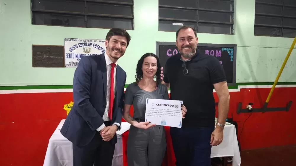 Participaram da cerimônia o secretário municipal de Educação, João Carlos Klein, representando a administração municipal; a diretora da escola, Mariely Genevro Schimmel; a coordenadora da EJA, Ketlin Manente; e o juiz de Direito da Vara de Família e Sucessões, Infância e Juventude, Renato Cigerza, que também fez uso da palavra, destacando a importância do projeto na formação cidadã dos participantes.