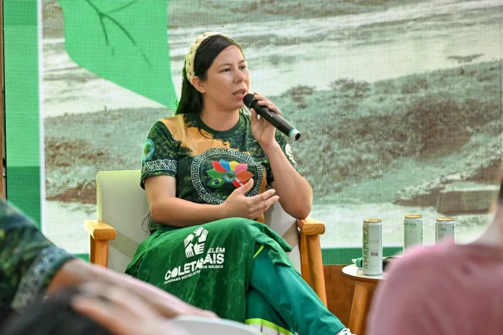 Um dos pontos altos do evento foi a apresentação da parceria com cooperativas de catadores em Belém, por meio do programa Coleta Mais. Débora Bahia, presidente da Concaves, uma das quatro cooperativas beneficiadas na capital paraense, emocionou o público contar como a iniciativa está transformando a realidade dos catadores locais. O programa oferece infraestrutura, equipamentos, capacitação e assessoria técnica, permitindo que as cooperativas se estruturem e ampliem sua capacidade de trabalho e geração de renda.