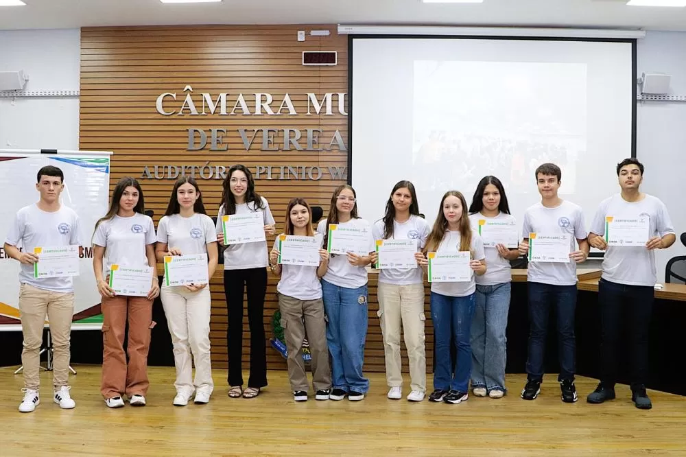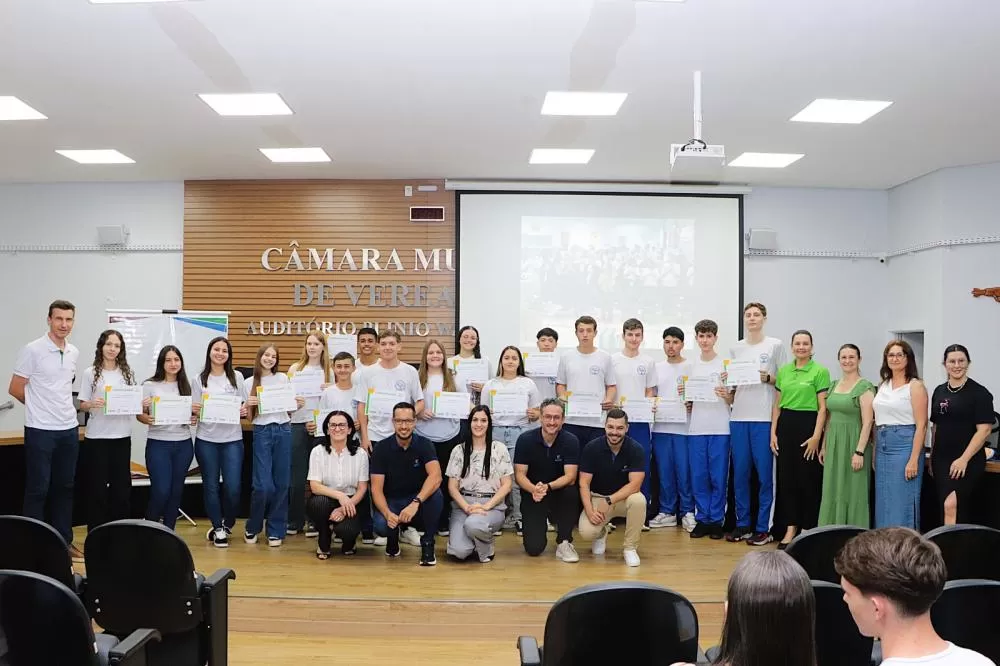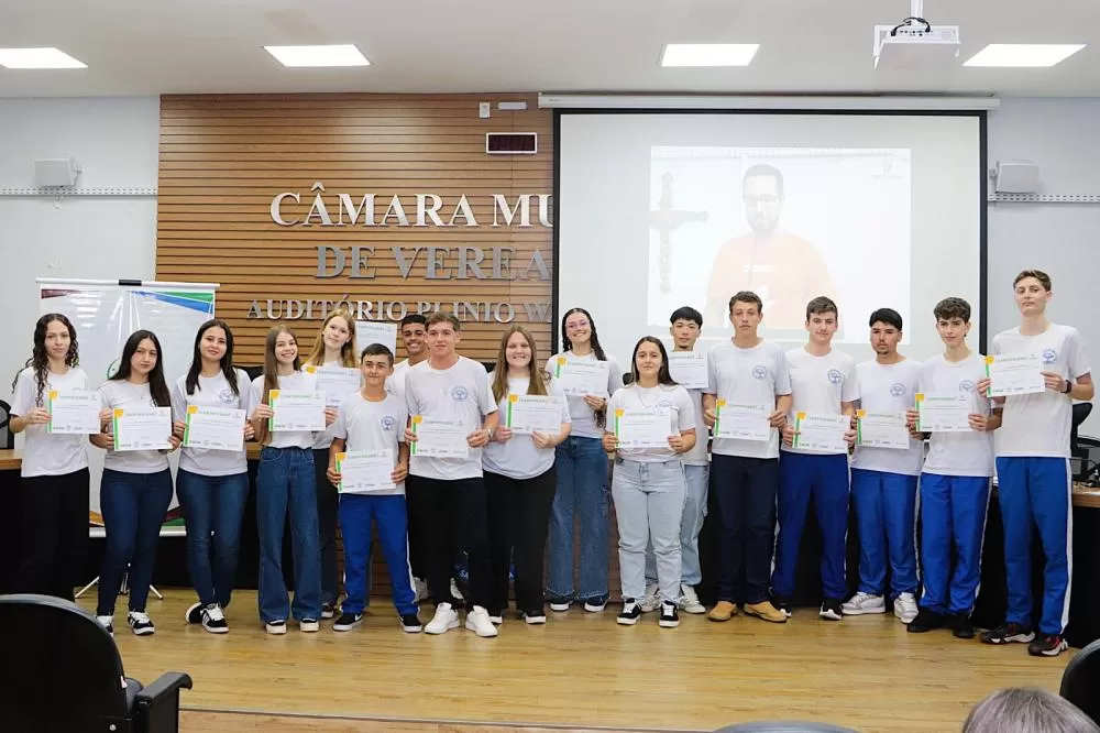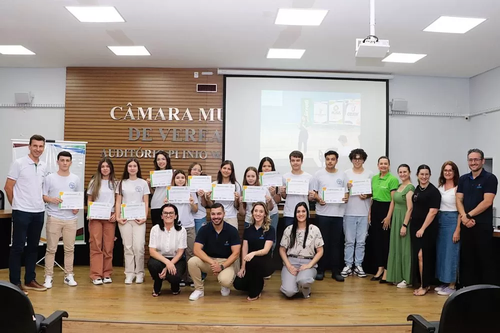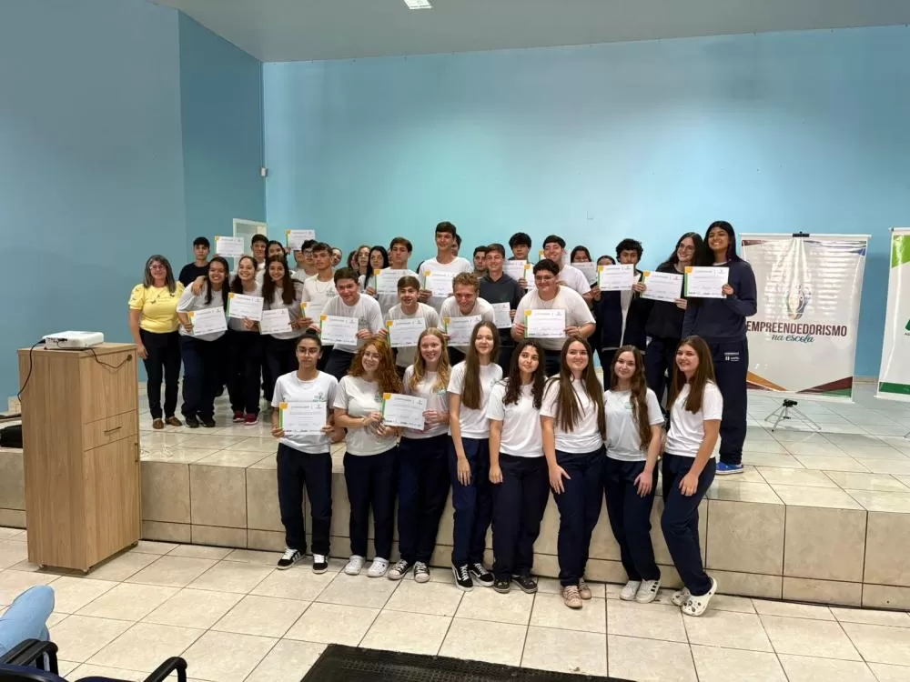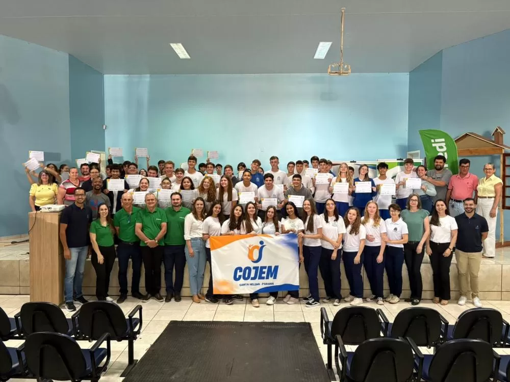 As turmas do Projeto Empreendedorismo na Escola, desenvolvido pelo Conselho do Jovem Empreendedor (Cojem) em parceria com o Sicredi, Associação Comercial e Empresarial de Santa Helena (Acisa), Sebrae e colégios estaduais de Santa Helena, concluíram oficialmente as atividades de 2025. Foram certificados estudantes do Colégio Estadual do Campo São Roque, Colégio Estadual do Campo Verônica Zimermann, de São Clemente, Colégio Estadual Santos Dumont, de Moreninha, e Colégio Estadual Humberto de Alencar Castelo Branco, da sede do município.