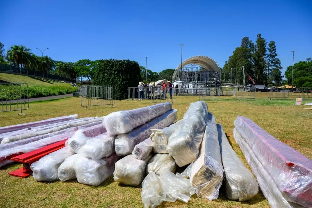 Montagem do Natal no Gramadão já começou. Fotos: William Brisida/Itaipu Binacional.