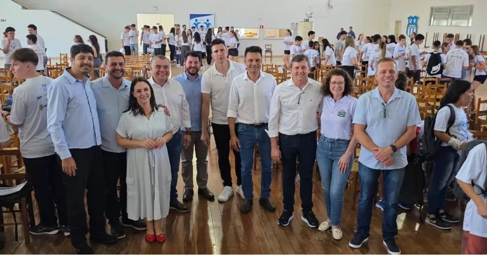 O prefeito Adriano Backes; o vice-prefeito, Vanderlei Sauer; a secretária de Assistência Social e primeira-dama, Andria Backes; e servidores da pasta participaram da cerimônia de premiação, junto a prefeitos dos municípios lindeiros, celebrando o desempenho das equipes vencedoras.