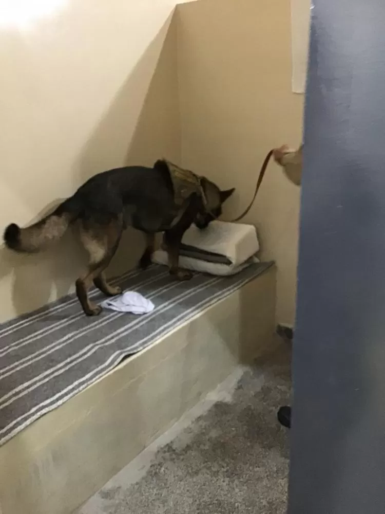 Os cães de faro Black e Colt, que são treinados para detecção de Armas de Fogo e Drogas foram acionados para uma inspeção nas dependências da Penitenciária.