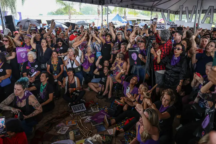 A manifestação contou com a presença de representantes do governo federal, entre eles, seis ministras, além de deputadas federais, da primeira-dama Janja Lula da Silva e diversas lideranças populares.