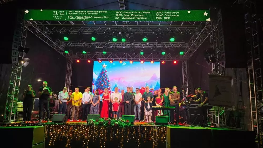 Acontece neste momento a solenidade de abertura do Natal Luz e Encanto de Marechal Cândido Rondon. A programação conta com uma celebração religiosa e apresentações culturais que marcam o início oficial das festividades natalinas no município.