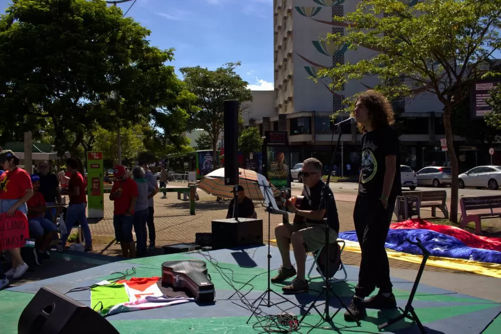 Iniciada às 9h30, a atividade transformou o espaço público em um fórum que uniu análise técnica e intervenções culturais. Músicas e poesias latino-americanas deram o tom do evento, servindo de moldura para as denúncias e reflexões políticas apresentadas por lideranças sindicais e acadêmicos.