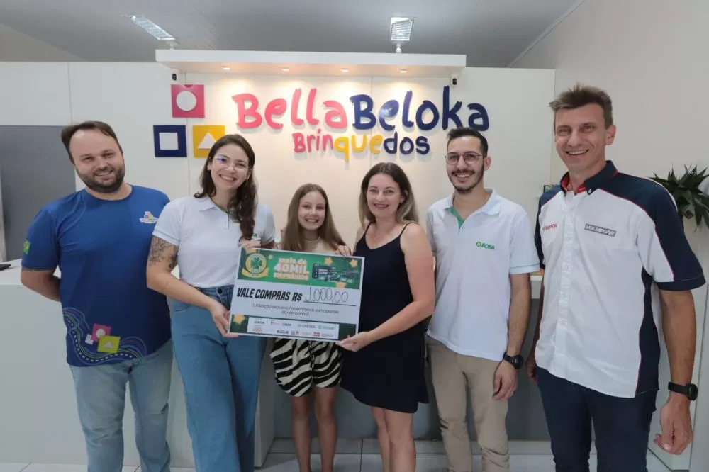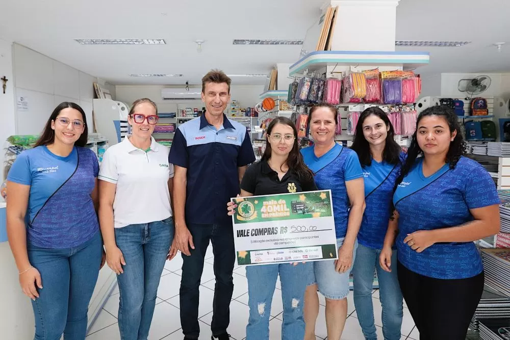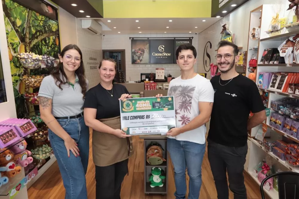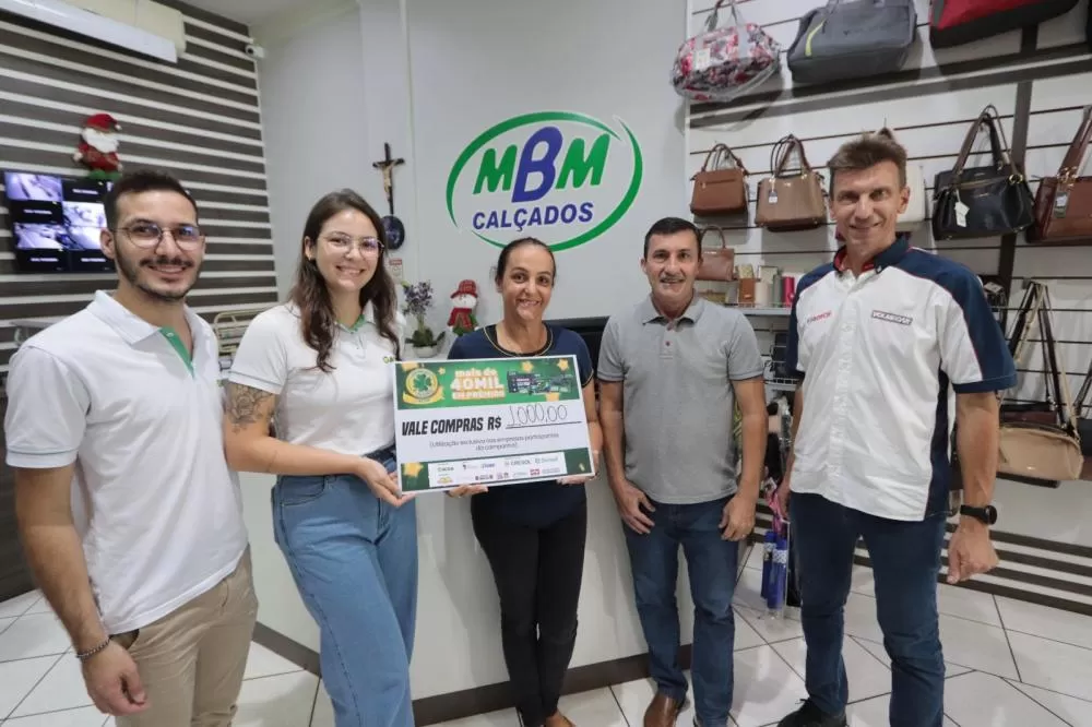 Também foram entregues vales-compras em diferentes valores. O prêmio de R$ 3.000,00 saiu para Pietra Lauana dos Santos Oliveira, que comprou na Cacau Show. Os vales de R$ 1.000,00 contemplaram Alexandra Kaiser, cliente do Supermercado Santa Helena; Arthur José de Brito e Querlinde Ires Scheidt Scheeren, ambos com compras realizadas na Foto Íris; Leonardo Luiz Uberti Redin, da Farmácia Real; Verani Koch, da Bellabeloka Brinquedos; e Denise Aparecida Zapani, da MBM Calçados.
