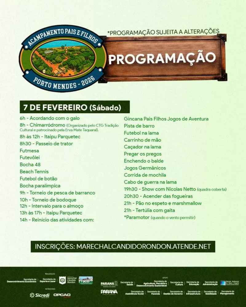 Programação: Confira o cronograma anexo/abaixo para saber os horários de saída e atividades.