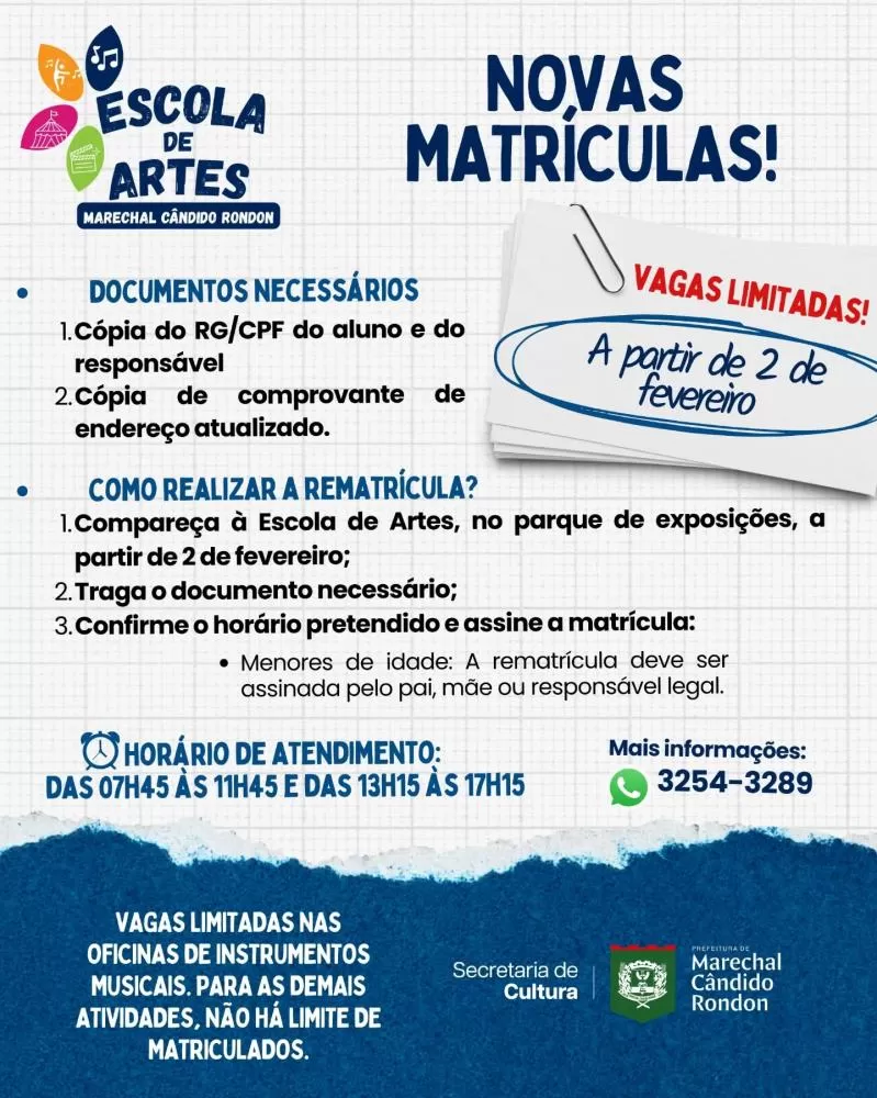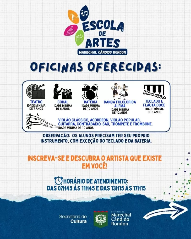 Municipal de Cultura, informa que continuam abertas as matrículas para a