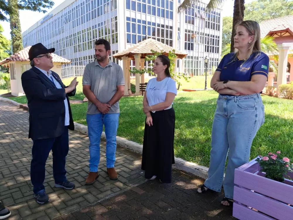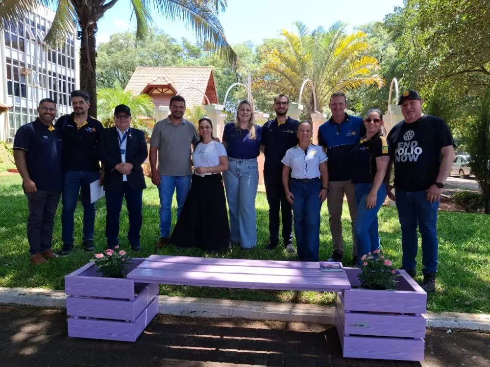 Após o encontro, o grupo se reuniu com a secretária de Assistência Social e primeira-dama, Andria Backes, em frente ao paço municipal, para apresentar ao governador do Rotary, distrito 4640, o Projeto Banco Lilás, promovido pelo Rotary Club de Marechal Cândido Rondon Gralha Azul, em parceira com a Secretaria Municipal de Assistência Social. A ação integra a campanha “Agosto Lilás”, iniciativa de conscientização e combate à violência contra a mulher.