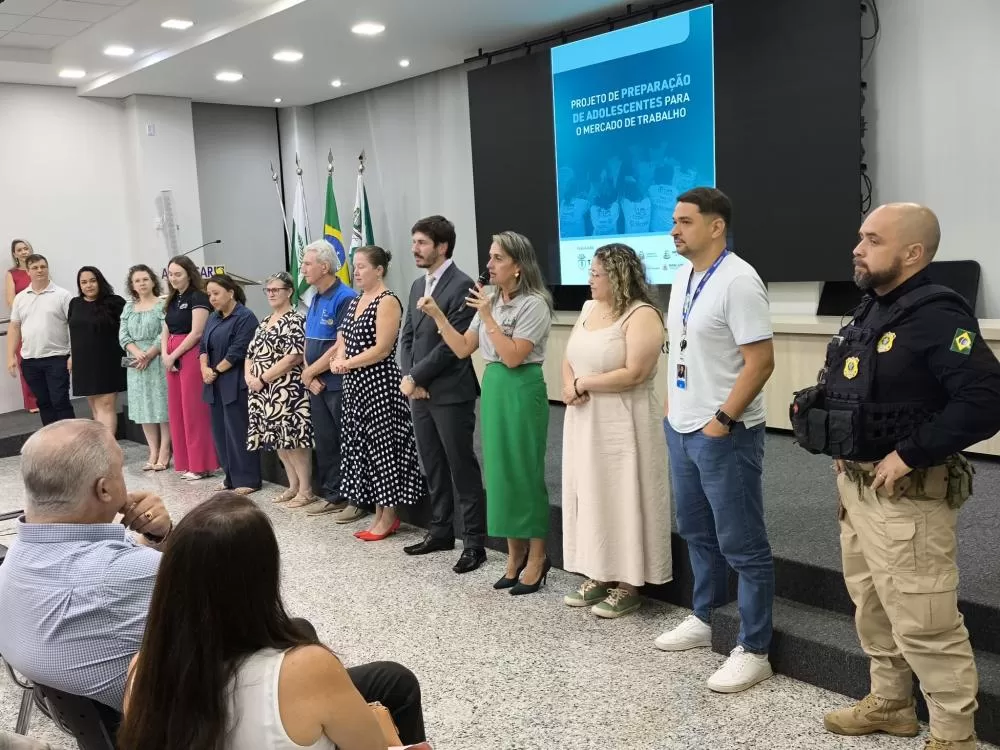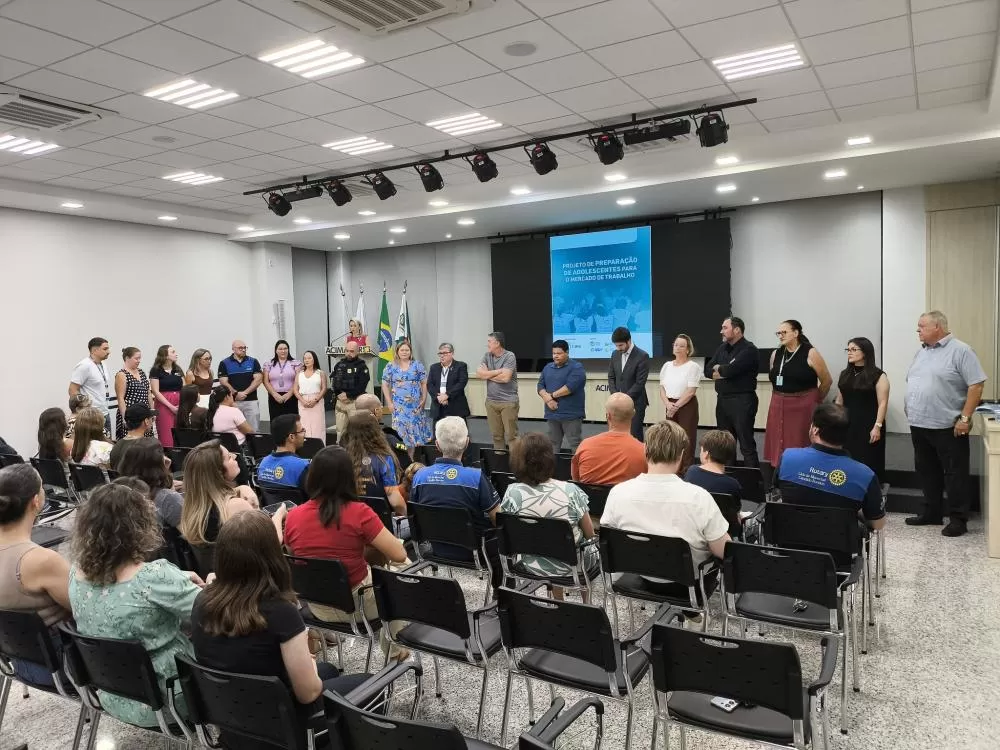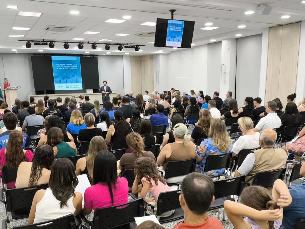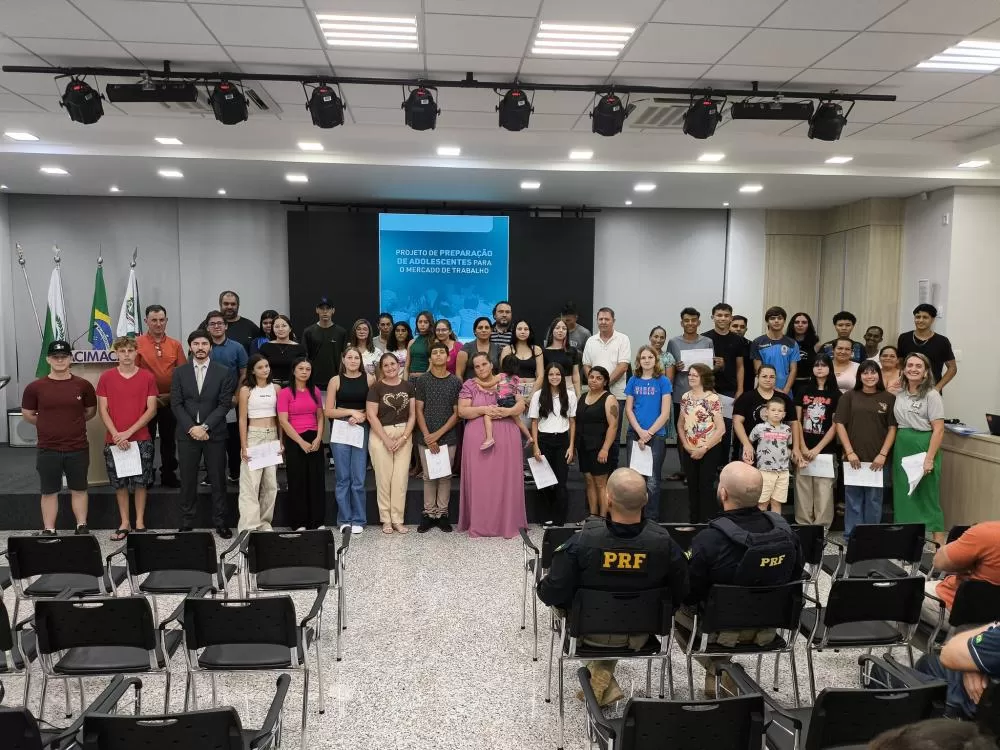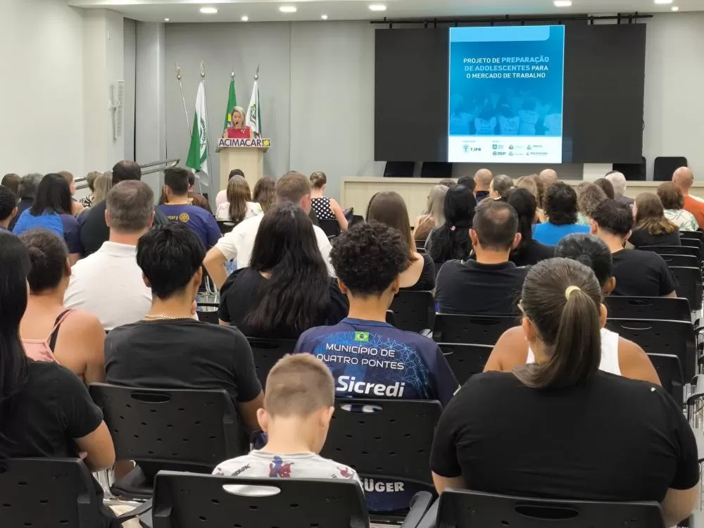 Foi realizada na noite desta segunda-feira (9), na Associação Comercial e Empresarial de Marechal Cândido Rondon (Acimacar), a abertura oficial do projeto “Preparação dos Adolescentes para o Mercado de Trabalho”, referente ao primeiro semestre de 2026. A cerimônia contou com a presença de autoridades, representantes de entidades parceiras, empresas e familiares dos participantes, entre eles o secretário de Educação de Marechal Cândido Rondon, João Carlos Klein, e do juiz da Vara da Infância e da Juventude, Renato Cigerza, entre outras lideranças locais.