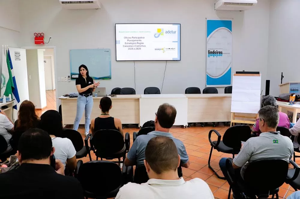 A Adetur Cataratas e Caminhos realizou, nesta terça-feira (17), uma oficina voltada à atualização do planejamento estratégico da entidade. Participaram diretores, representantes do setor público, do setor privado e lideranças regionais. A iniciativa segue uma prática adotada pela instituição a cada quatro anos e atende também às diretrizes atuais do Ministério do Turismo, que exige o documento das Instâncias de Governança Regional (IGRs) em todo o país.