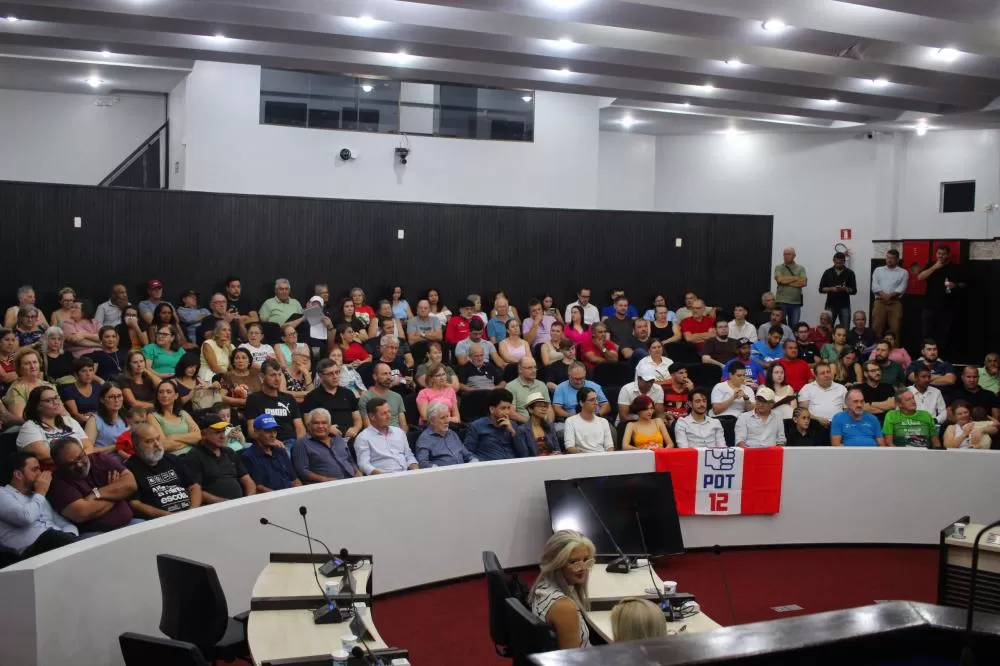 Já a Plenária na Câmara de Vereadores, com plenário lotado, teve o objetivo de mobilizar e animar os apoiadores. Durante as atividades, as falas das lideranças regionais e municipais seguiram uma linha de questionamentos à privatização da Copel, com denúncias sobre as frequentes quedas de energia na região oeste, e da necessidade de maior apoio aos pequenos agricultores, principalmente os agricultores familiares. Foi citado o caso de um agricultor da região que teve um prejuízo de nove milhões de reais em razão de interrupções no fornecimento de energia, que se tornaram constantes no cenário pós-privatização. Também foram criticadas as terceirizações nas escolas e o programa de Escolas Cívico-Militares, alvo de denúncias de assédio.