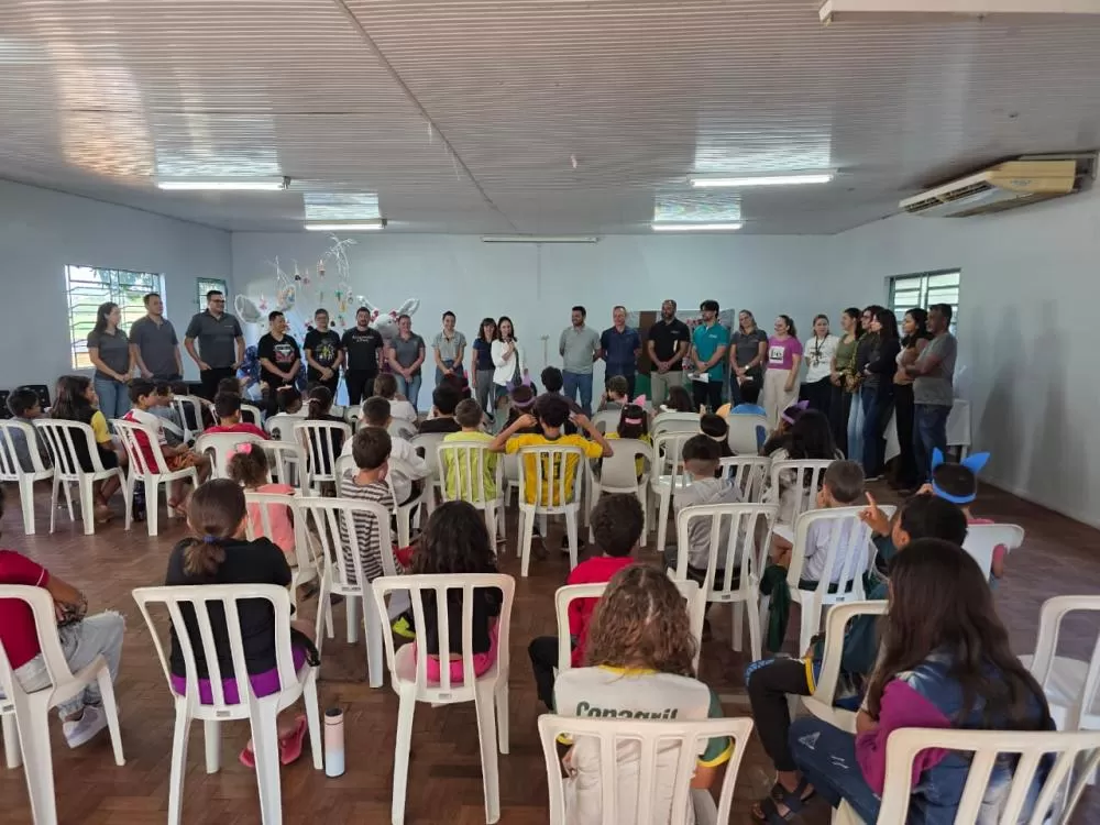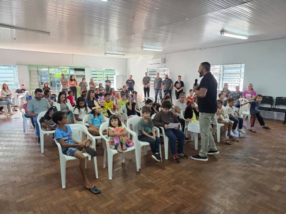 Ao final das apresentações, as crianças foram presenteadas com um mimo, encerrando a atividade com alegria e espírito de celebração.