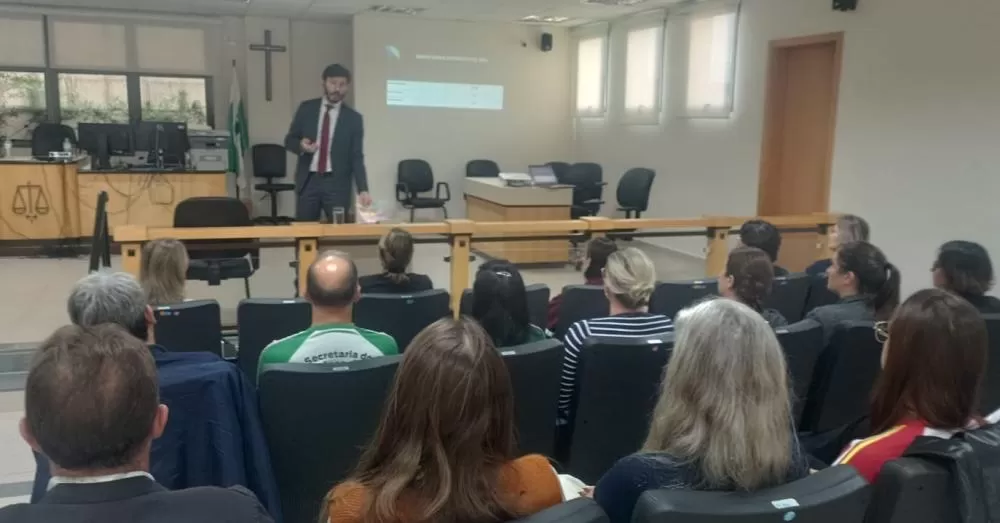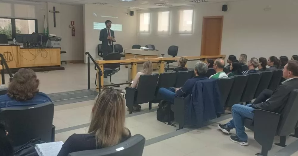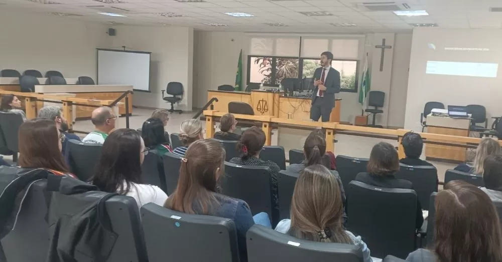 A formação foi realizada no plenário do Tribunal do Júri e contou com a presença do juiz de Direito da Vara da Família, Renato Cigerza, proporcionando um momento de aprendizado, reflexão e orientação sobre as etapas do projeto.