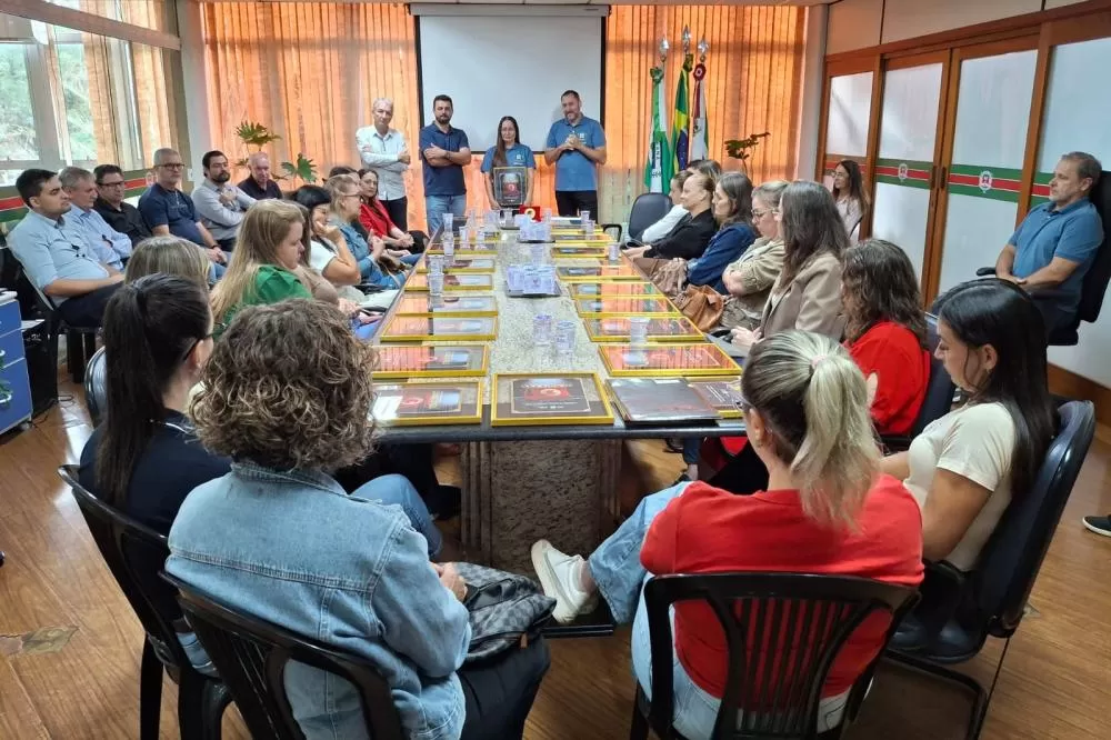 O ato, nesta quinta-feira, contou com a presença do prefeito Adriano Backes, do secretário de Educação, João Carlos Klein, demais secretários municipais, além dos vereadores Valdir Sachser (presidente), Carlinhos Silva, Policial Fábio e João Eduardo dos Santos (Juca). Também participaram diretores das escolas municipais e a equipe de assessoria pedagógica da Secretaria de Educação.